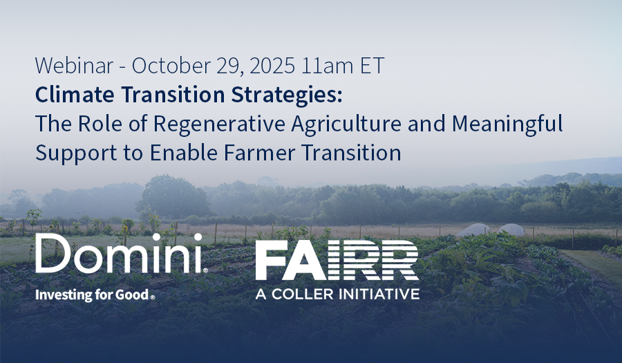 Domini Impact Investments LLC (“Domini”) is a women-led SEC registered investment adviser that harnesses the power of finance to help create a better world. With an exclusive focus on impact investing, we aim to help drive positive outcomes for our planet and its people while seeking competitive financial returns. Our continuous innovation and caring, diverse community fuel tomorrow’s prosperity as we endeavor to make “investing for good” the way all investing is done.