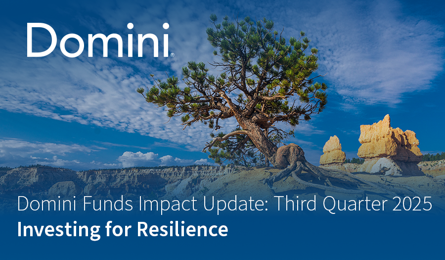 In this update, we discuss some of our recent conversations with companies around their transition plans, highlight portfolio companies that are demonstrating leadership, and spotlight our bolstered commitment to decarbonizing the Domini Funds’ portfolios and positioning them for a just and equitable low-carbon transition.